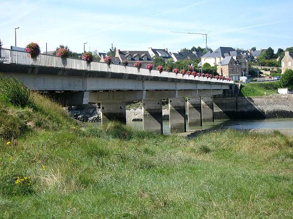 Premier pont construit en 1860. Avant cette construction, la traversée de l'Arguenon se faisait en bateau à marée haute, ou par des gués à marée basse, mais aussi à dos d'homme.