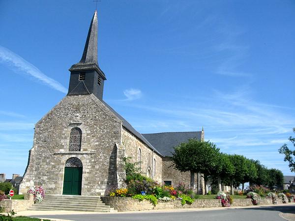 Reconstruite sur les vestiges d'une église du XI° siècle, on trouve des traces de l'art roman sur les murs, la nef, et le chevet. Elle dépend alors de l'Abbaye de Saint-Jacut de la Mer.Elle est restaurée à plusieurs reprises aux XIX° et XX° siècles. Deux fenêtres très étroites subsistent de l'ancienne église. Dans le fond du choeur, une ogive du XV° siècle a été dégagée.