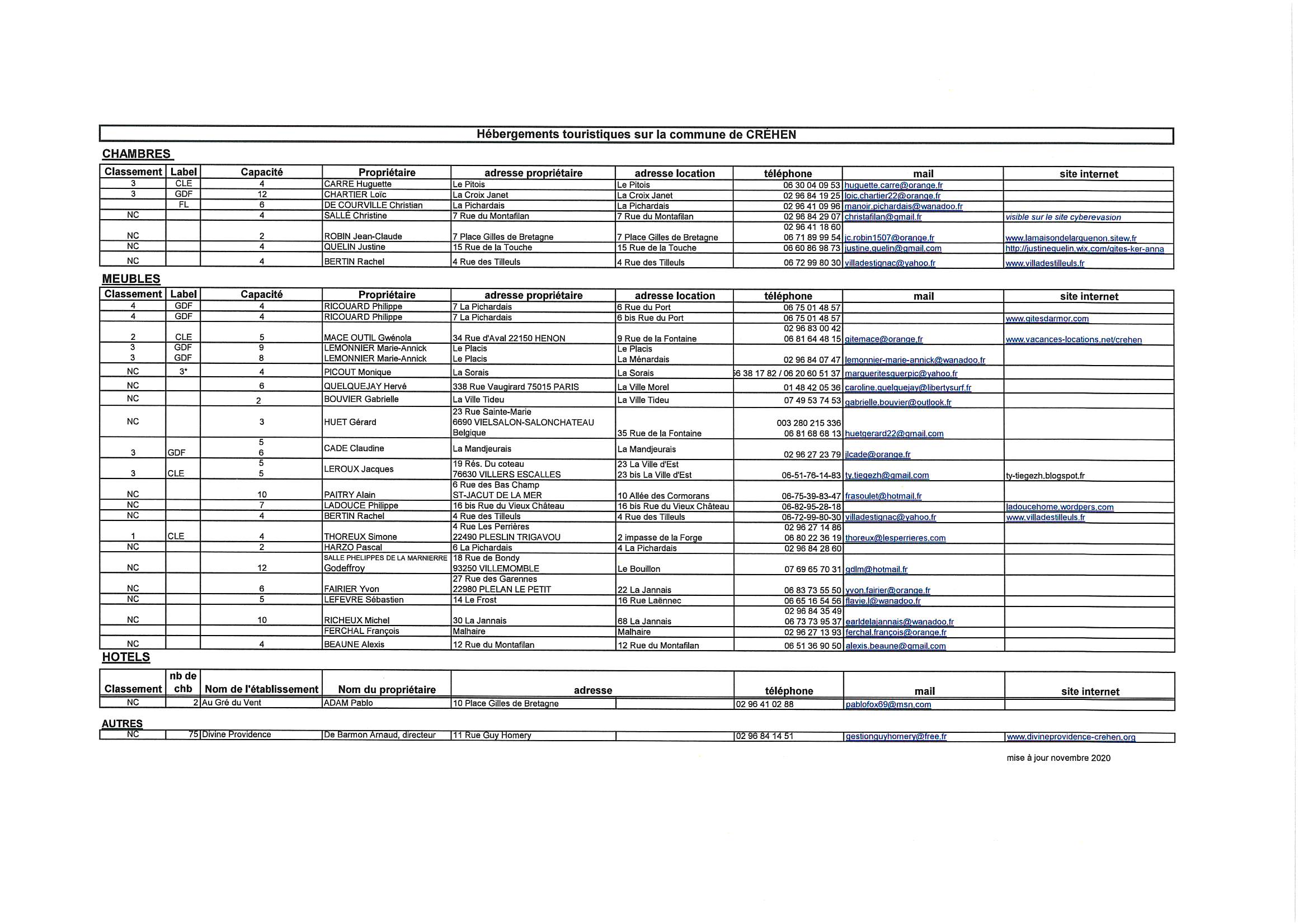 Cliquez sur le lien ci-dessous pour avoir la liste des hébergements touristiques sur la commune de Créhen